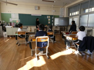 11/14:6年生が町内の6年生と人間関係つくりプログラムを新宮中で行いました。