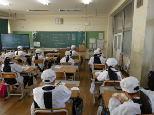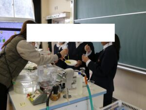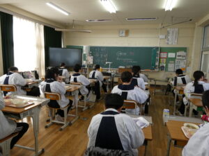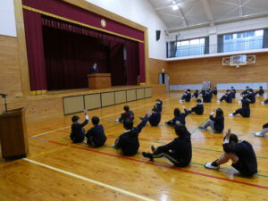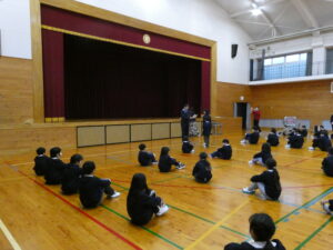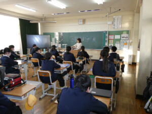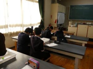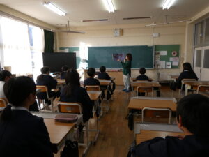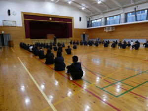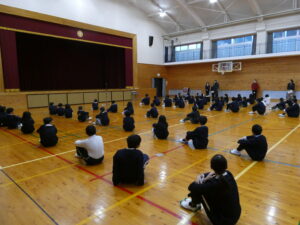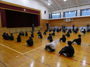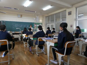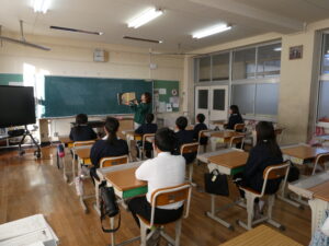 1/30:新宮中学校の入学説明会があり、中学校での体験学習がありました。