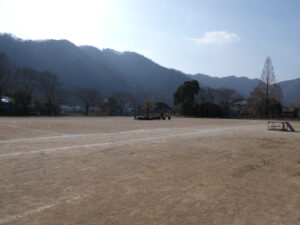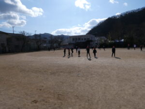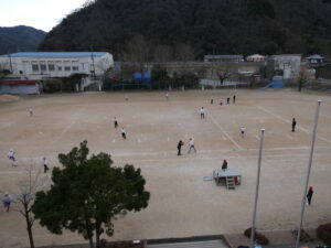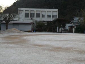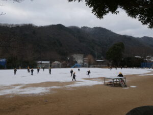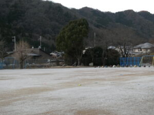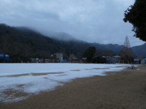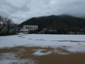 1/26:今朝の運動場です。昨日の雪が残ってます。