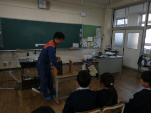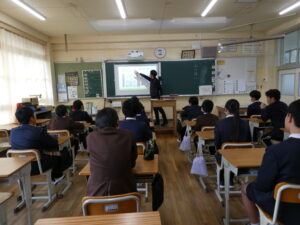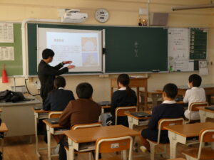 1/30:新宮中学校の入学説明会があり、中学校での体験学習がありました。