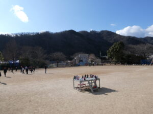 1/26:今朝の運動場です。昨日の雪が残ってます。
