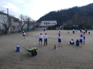 2/3:本日は節分です。朝、運動場は白くなってました。