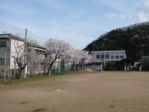 3/16:6年生が運動場の溝の掃除をしてくれました。