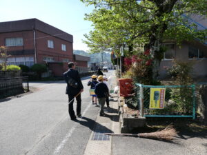 4/16:2年生が町たんけんで上笹会館、ちづちゃんの花園に行きました。